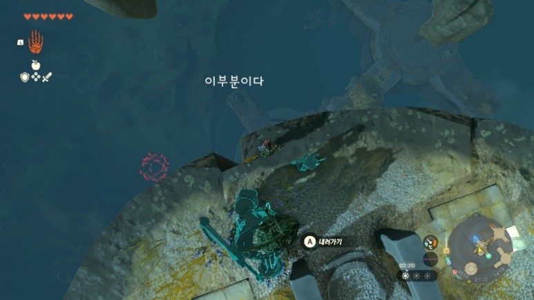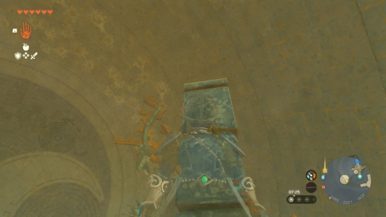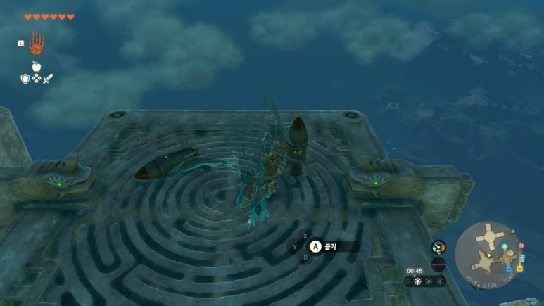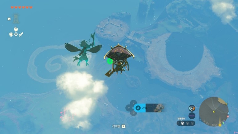 링크의 몸 방향은 두번째로 높은 십자가 섬을 향하고 저 구조물에 탑승을 해준다.