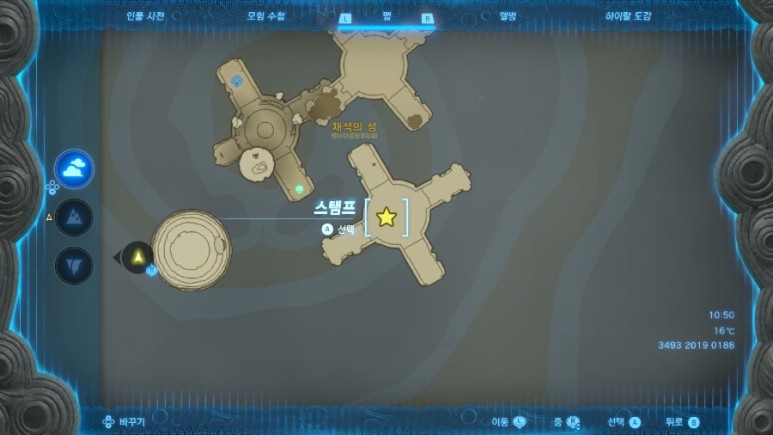 지도에 있는 십자가 모양 섬의 가장 어두운 1층 섬으로 가주자.