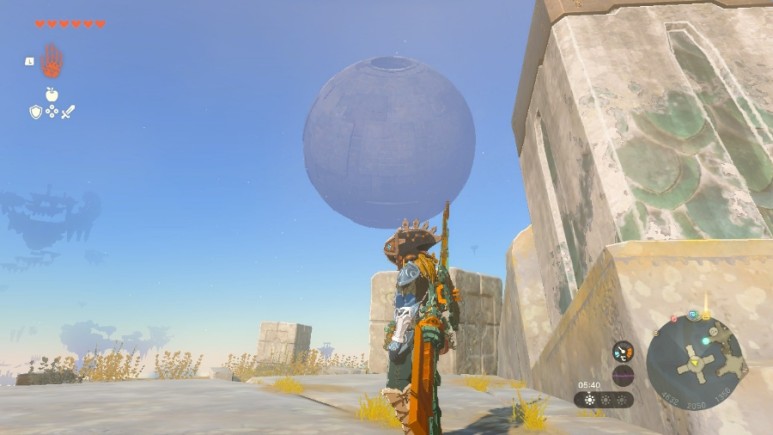 링크의 몸 방향은 두번째로 높은 십자가 섬을 향하고 저 구조물에 탑승을 해준다.